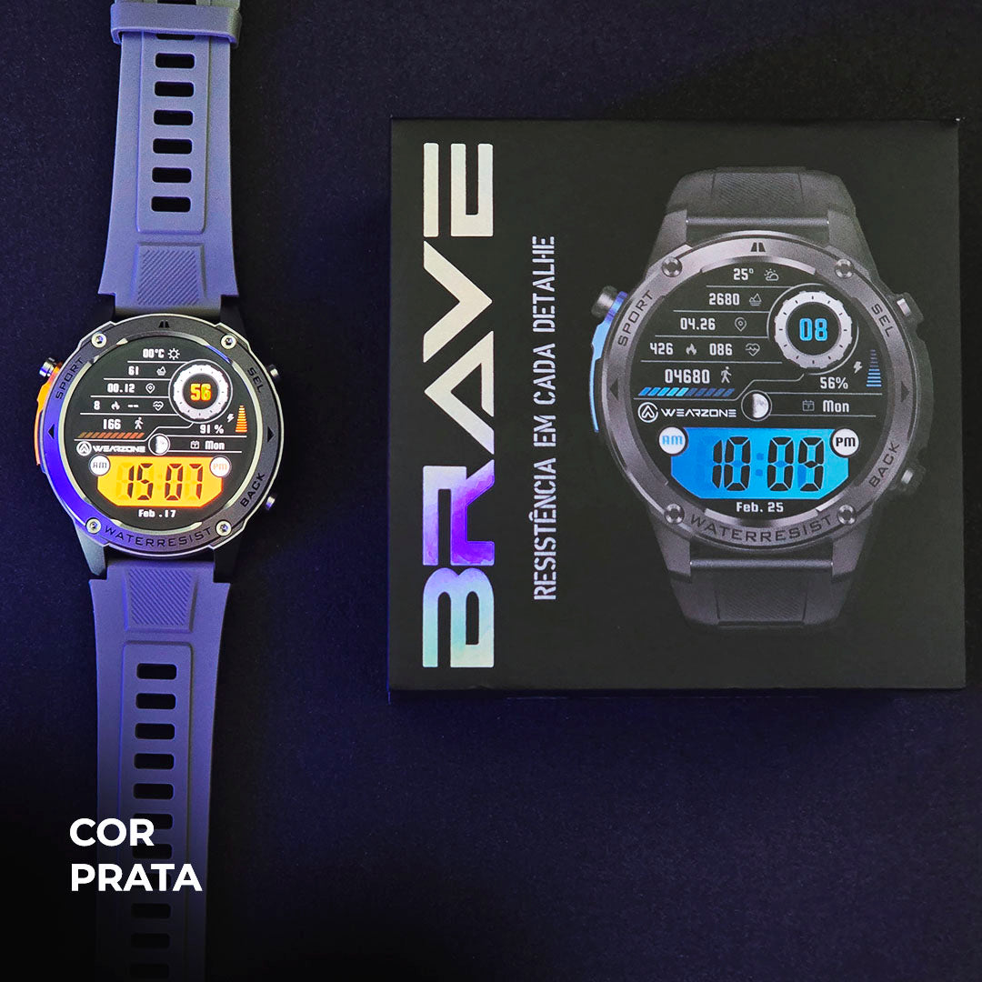 Redefinimos o sinônimo de força, e unimos em sintonia nunca vista resistência e bravura. Com novo WEARZONE BRAVE o robusto que traz resistência militar e certificação 5ATM a prova de água do mar, além do GPS L5 de dupla frequência desenvolvido pela WEARZONE faz com que não sofra interferência em áreas de prédios e fechadas com trajeto em tempo real na tela guiado por bússola e muito mais... Descubra o seu lado destemido com o novo WEARZONE BRAVE.