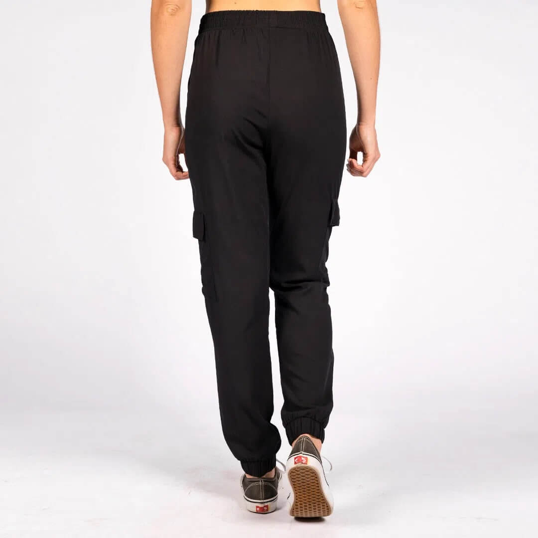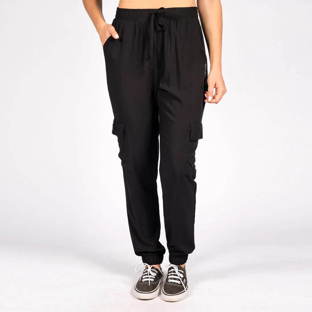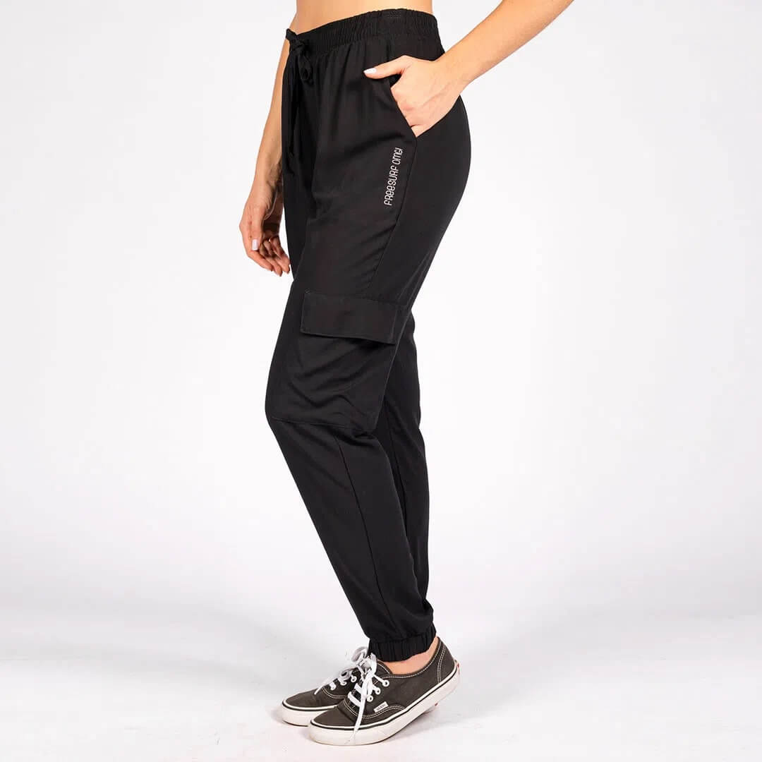 Sua cor preta e o design com bolsos cargos acrescentam um toque moderno e prático, enquanto o cordão ajustável na cintura garante um ajuste personalizado.