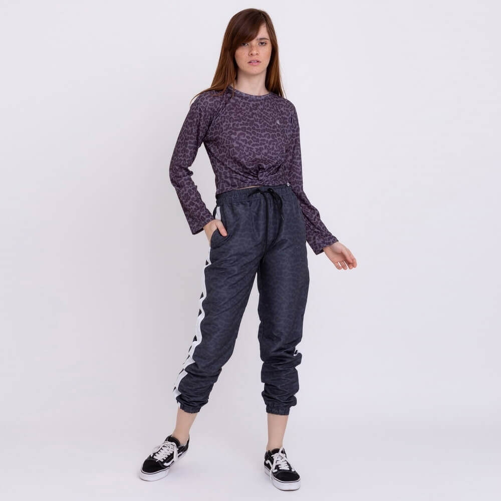 Feita de 100% poliéster, essa calça preta é ideal para quem busca leveza e durabilidade. Seu design moderno é perfeito para compor looks casuais ou esportivos, oferecendo mobilidade e conforto em todas as ocasiões.