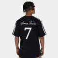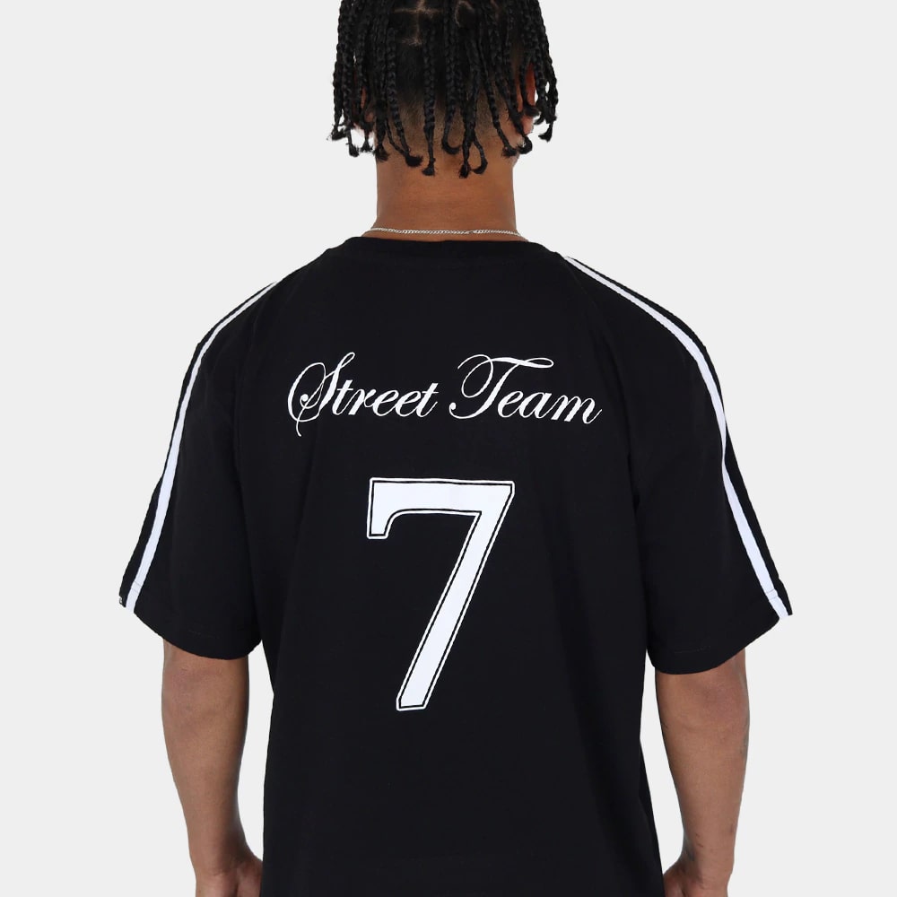 A Camiseta Team possui silk na frente e nas costas, sua ribana é canelada 2/1 e a malha utilizada é Menegotti. Possui etiquetas personalizadas. Sua composição é 100% algodão.