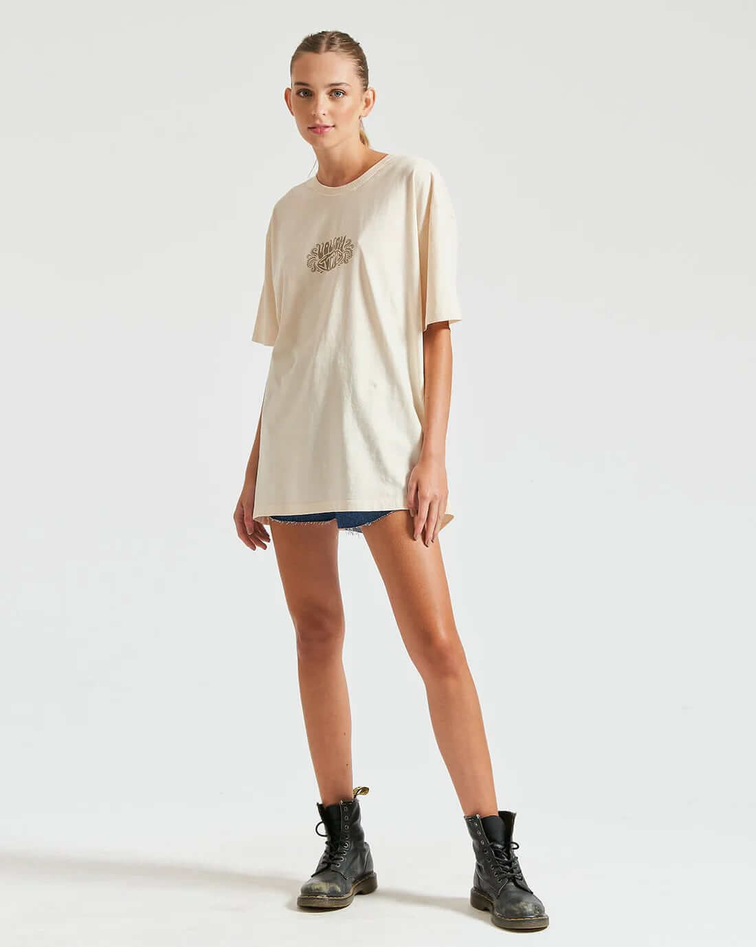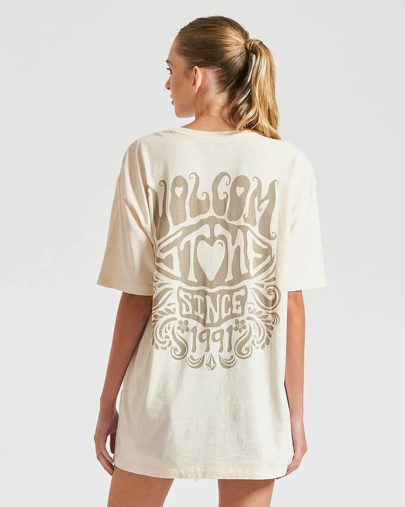 Camiseta Volcom Oversized My Guys, possui modelagem oversized, estampa em silk frente e costas e lavanderia efeito estonado