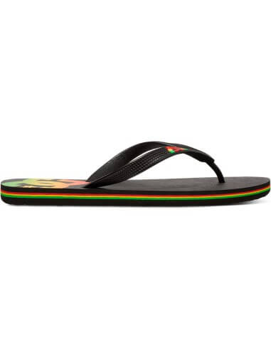 Com design nas cores do reggae, preto com logotipo em amarelo, vermelho e verde, este chinelo oferece uma alça fina moldada com o logotipo DC, palmilha texturizada e compensação de três camadas para maior conforto.