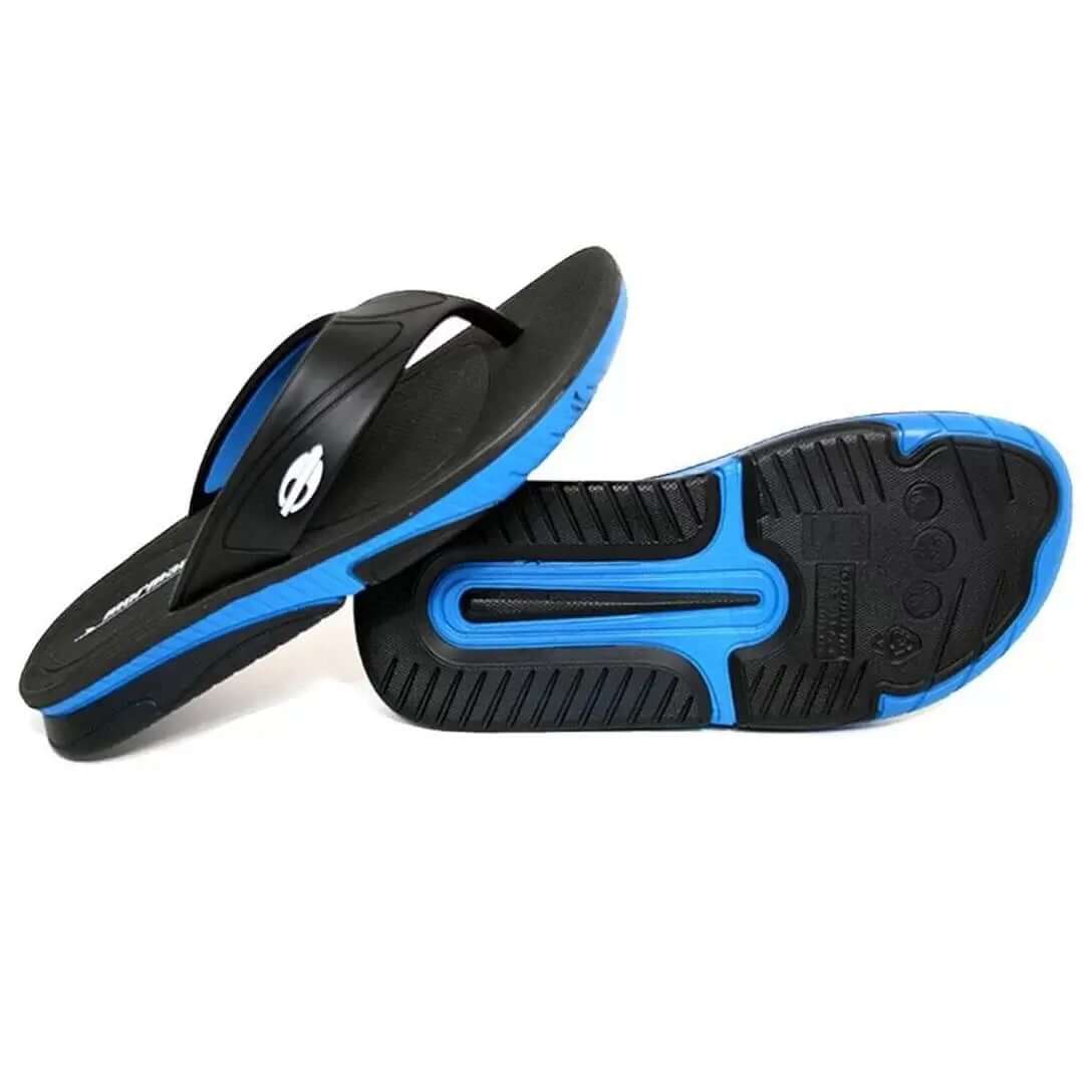 Combinando as cores azul e preto, este chinelo oferece um design moderno e versátil, perfeito para o dia a dia.