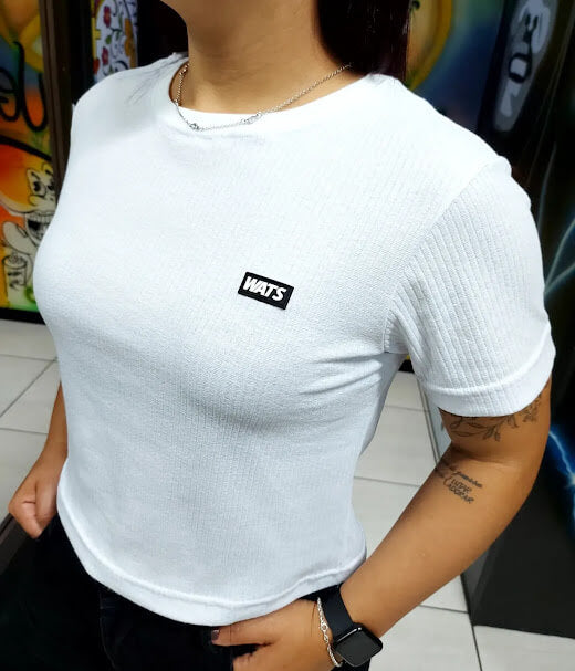 Adicione um toque de estilo ao seu guarda-roupa com o Cropped Canelado Branco Feminino da Wats Company.