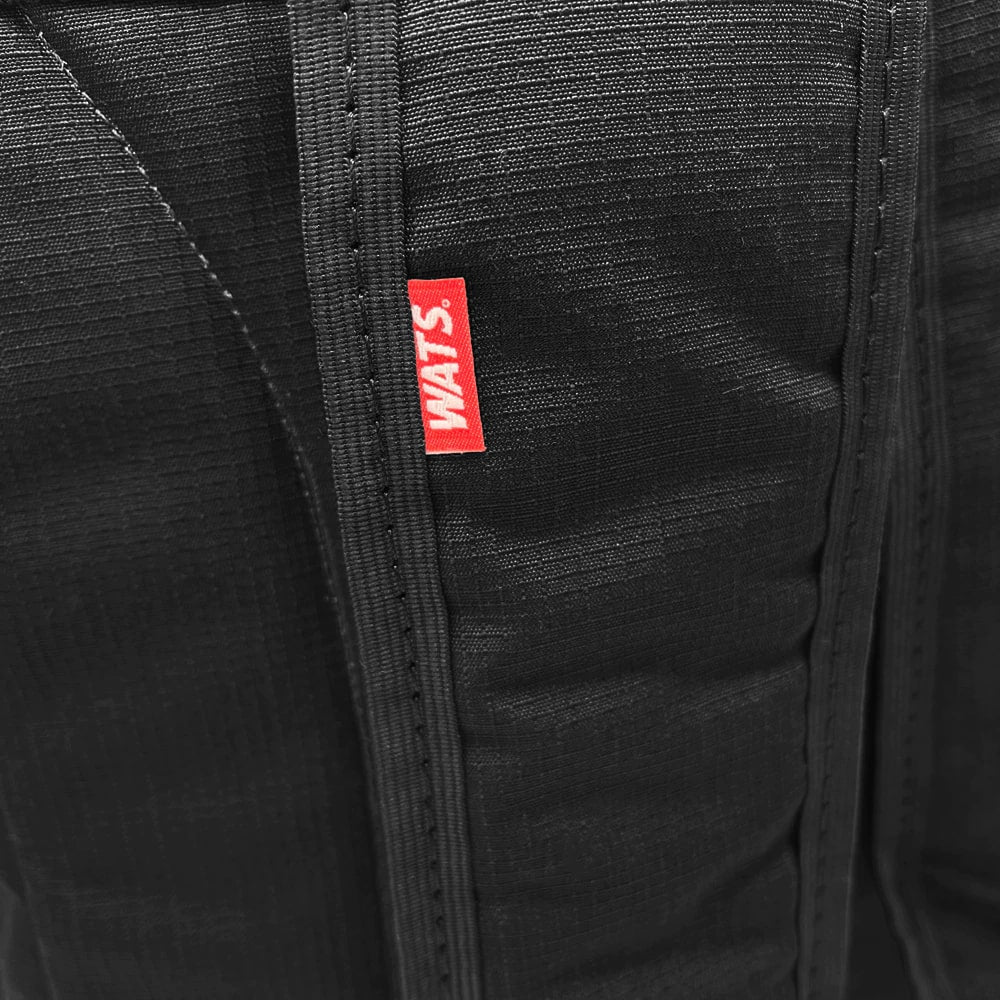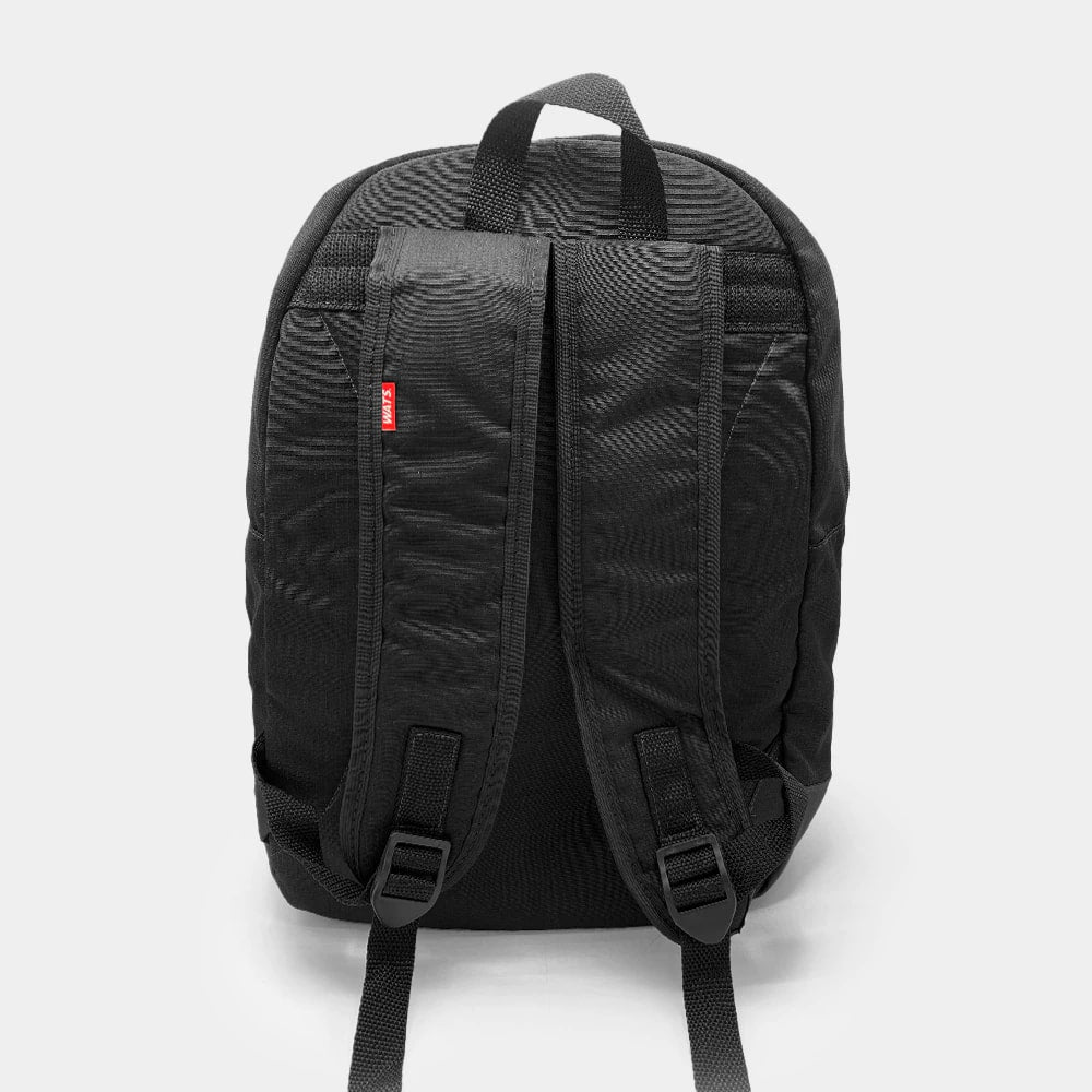 Possui espaço frontal com fechamento em zíper e etiqueta emborrachada.
