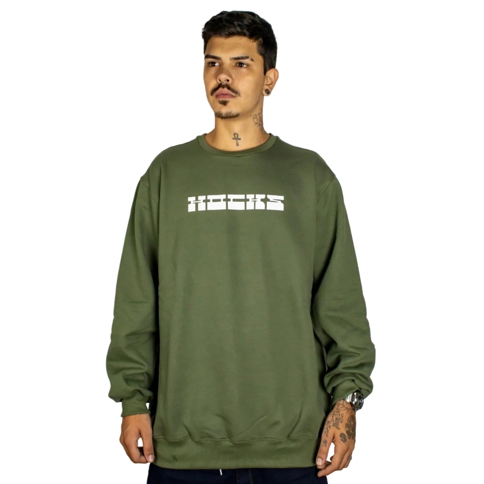 Moletom Careca Especial Bloco Verde Hocks Skate - Big Outlet