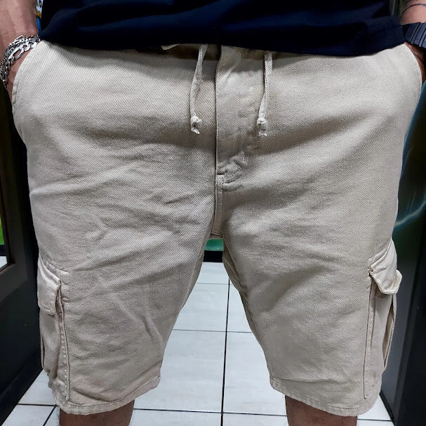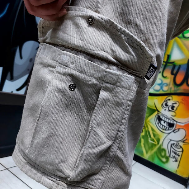 A bermuda cargo possui bolsos laterais práticos, tornando-a perfeita para atividades ao ar livre e uso diário.