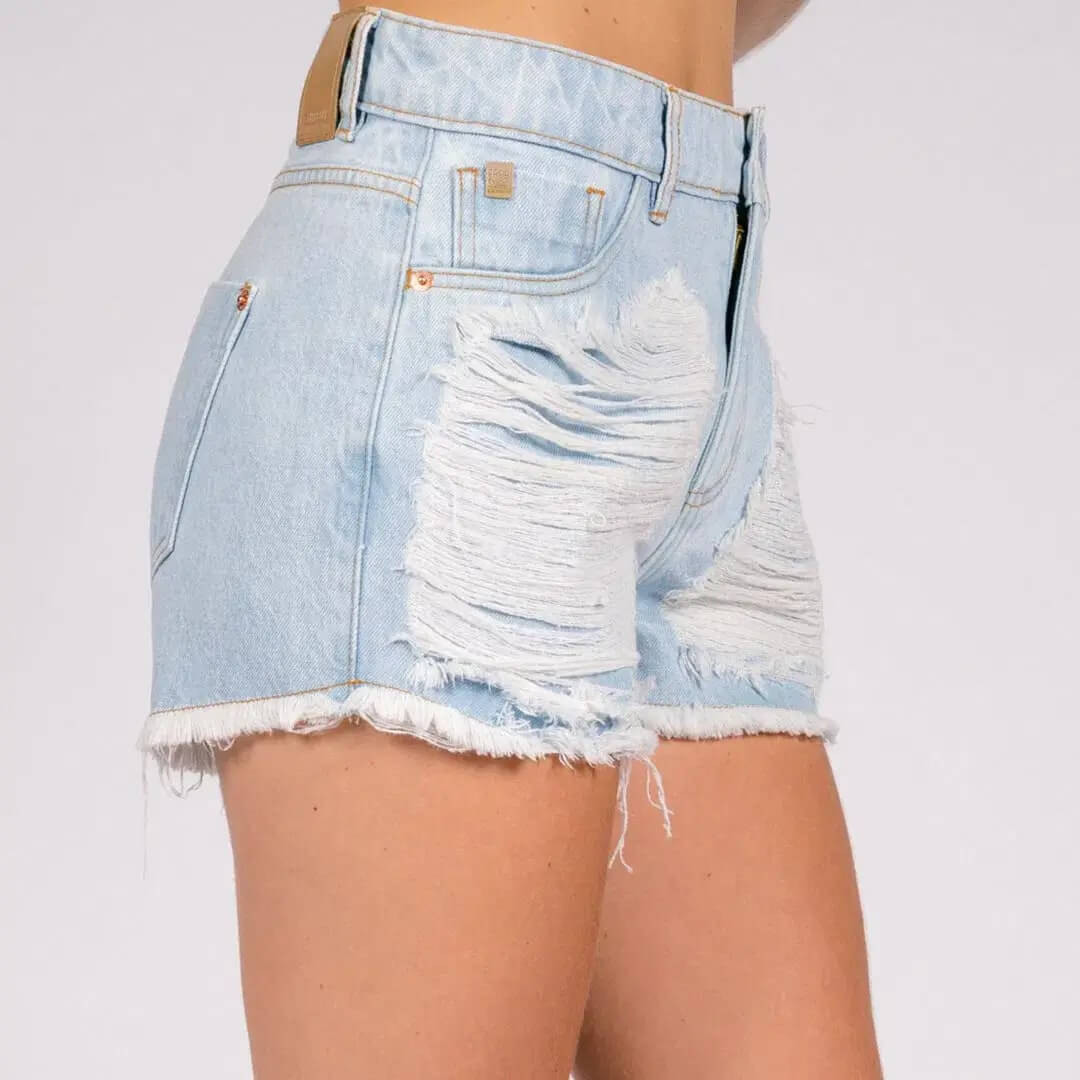 Shorts Jeans Street Feminino Destroyed - Lavagem Clara