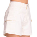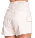 Possui cintura alta, cós com passantes, fechamento frontal por zíper e botão, bolsos frontais e posteriores, e barra dobrada.
