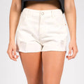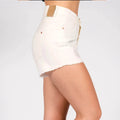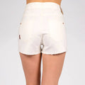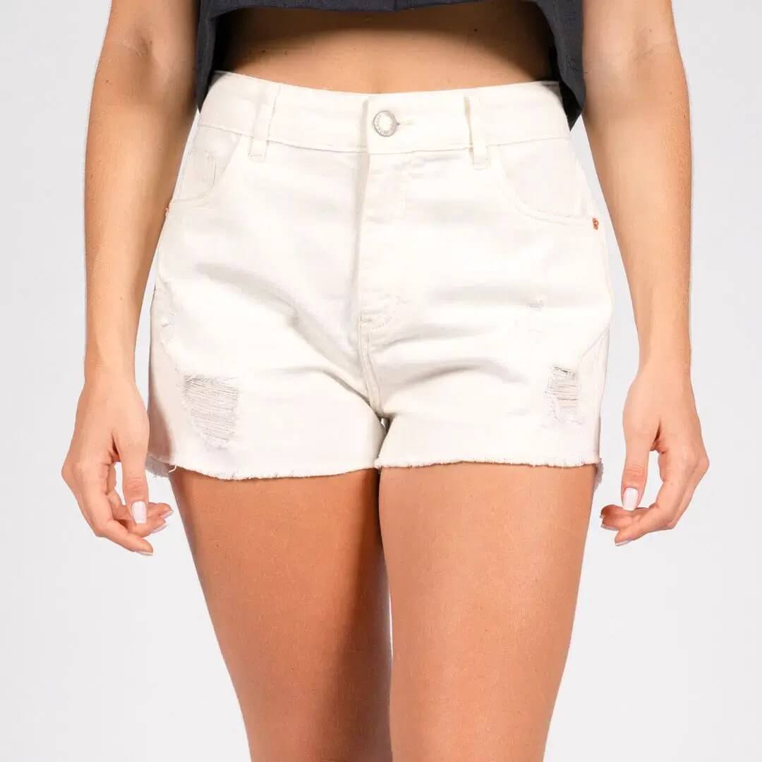 Confeccionado em sarja branca com 98% algodão e 2% elastano, este shorts oferece um ajuste perfeito e um toque suave ao corpo.